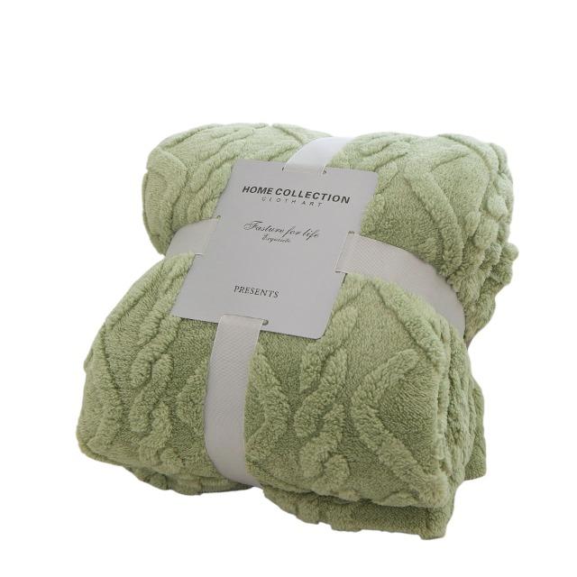【Gグリーン】Simpleケーブルニットブランケット