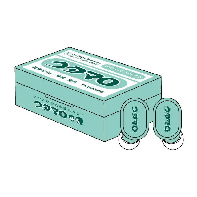 お家で使っているウタマロ石けんデザインのワイヤレスイヤホンが登場! ※商品管理のためパッケージやタグに直接バーコードシールを貼り付けさせていただく場合がございます、予めご留意ください。
