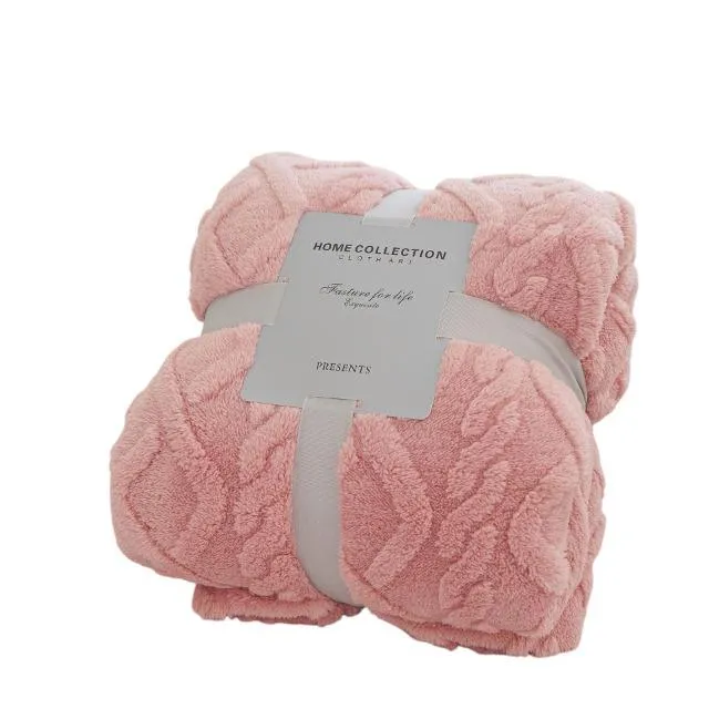 おしゃれなケーブルニットデザインのブランケット。肌寒い季節にぴったりです。 ※商品管理のためパッケージやタグに直接バーコードシールを貼り付けさせていただく場合がございます、予めご留意ください。